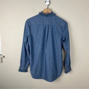 J Crew Classic Fit Chambray Ruffle Neck Shirt