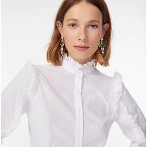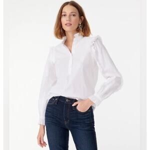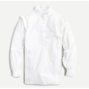 J Crew Classic Fit Ruffle Popover White Poplin Shirt Top Blouse Tunic XXL 2X 2XL