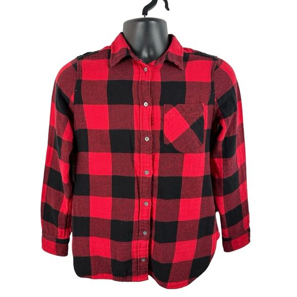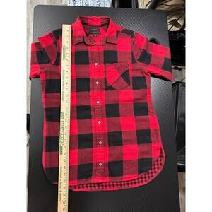 J Crew Classic Flannel Buffalo Plaid Red Black Western Preppy Size 0 Loose Fit