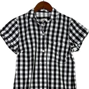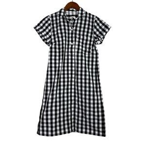 J. Crew Classic Gingham Checkered Short Sleeve Shirt Mini Dress XS Black White