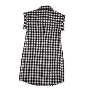 J. Crew Classic Gingham Checkered Short Sleeve Shirt Mini Dress Pocket XS Black White