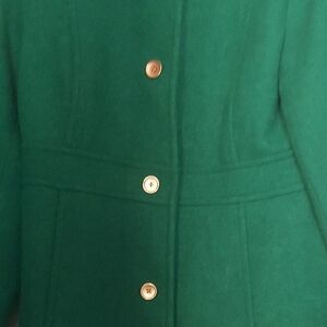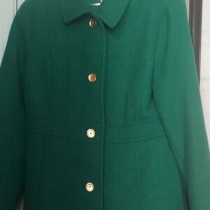 Chic green pea coat with gold buttons. Timeless design by J. Crew.