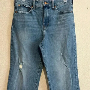 J. Crew Classic High Rise Straight Distressed Jean in Tompkin Wash