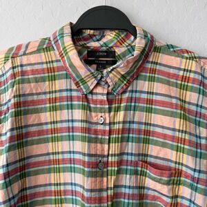 Keywords: J. Crew, Plaid Shirt, Long Sleeve, Womens Shirt, Multicolor Shirt, Cotton Shirt, Silk Blend, Button Down, Classic Fit, Casual Shirt, Re-Imagined, Sustainable Fashion, Eco-Friendly, Comfortable Shirt, Everyday Wear