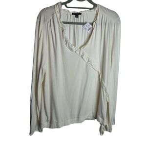 J. Crew Classic Ruffle Hem Side Tye Long Sleeve Blouse XL Ivory NWT
