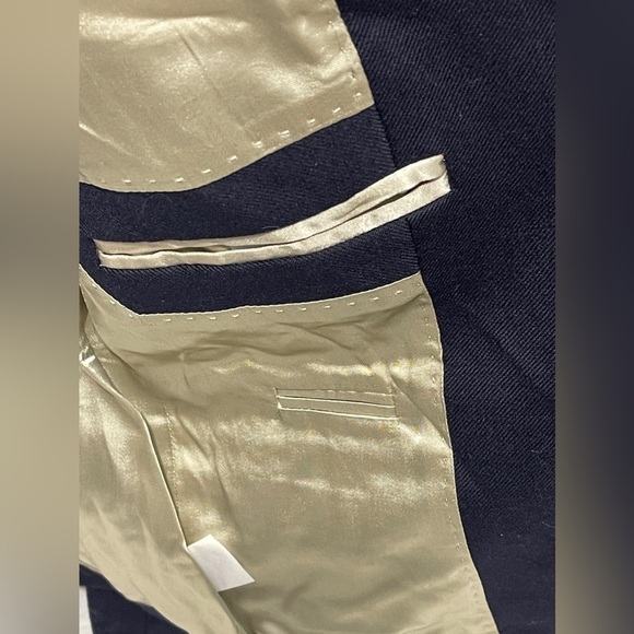 Lined with cream fabric inside of blazer and striped cream fabric in sleeves