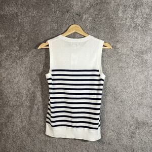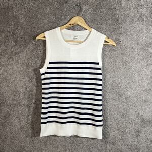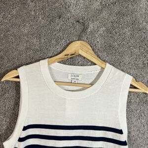 J. Crew Classic Shell Sweater Womens XS White Striped Sleeveless Crew Neck