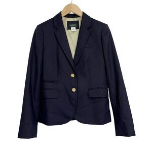 J. Crew Womens Classic Wool Schoolboy Blazer with Gold Buttons in Dark Navy blue, size 2. The original schoolboy blazer, with the same length, the same slightly shrunken, superchic fit and the same details you fell in love with—including a secret interior pocket for carrying little extras like lipstick (and, hello, ChapStick). Crested gold buttons added for a dash of legacy luxe.