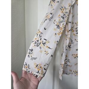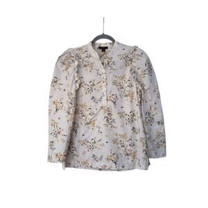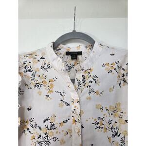 J Crew Classic Yellow Budding Floral Puff Sleeve Spring Cotton Shirt, Size Small