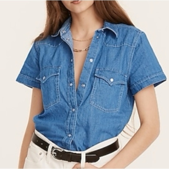 J Crew Classic-fit short-sleeve western snap button chambray shirt