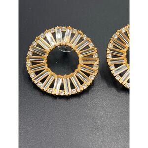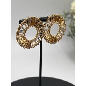 J. Crew Clear Crystal Baguette Round Pinwheel Forward Hoop Pierced Earrings