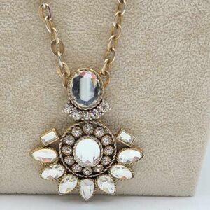 J Crew Clear Crystal Flower Sunburst Pendant on a Long Chain