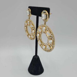 These new earrings have so much sparkle. Great Party earrings. Gold Plated Brass. Measure 2 1/4"