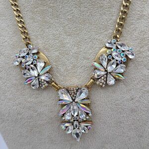 J Crew Clear Crystal Gold Tone Statement Necklace