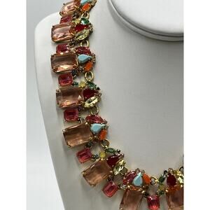 J. Crew Cluster Multicolor Emerald-Cut Crystals Jewel-Tone Collar Necklace