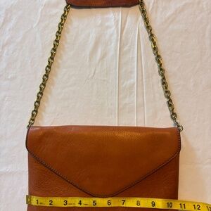 J Crew Clutch Bag Leather Tan Shoulder Strap