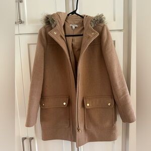 J Crew Factory Tan Hooded Coat with faux fur