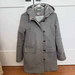 Womens JCREW Alfie Topcoat Jacket. Crafted in luxe, textured wool from Italy’s Nelli Gori Mill. Relaxed fit. Straight through waist. Hits below knee. Button closure. Notch collar with felt under collar. Functional buttons at cuffs. Originally $498