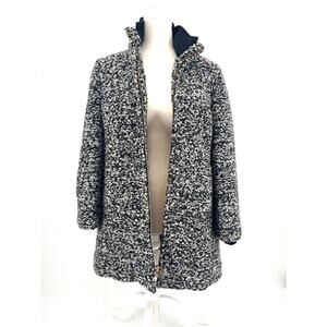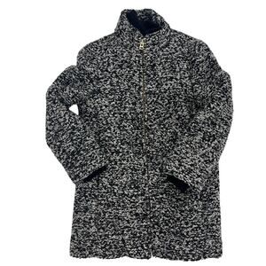 J Crew Coat Italian Wool Lodge Zip Up in Boucle Speckled Black White 6P