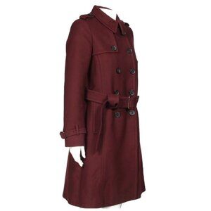 J Crew Coat Women Icon Trench Coat Wool Cashmere Burgundy Double Breast sz 4 381