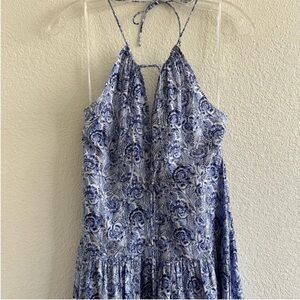 J. Crew Collection Anguilla Halter Maxi Dress Blue Floral