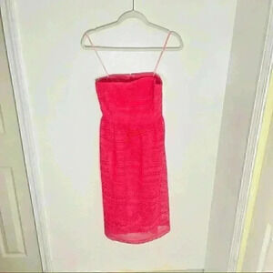 J. Crew Collection Bright Dahlia Floral Lace Strapless Dress Pink Size 2