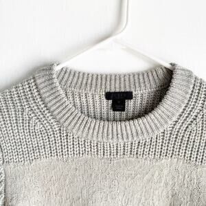 J. Crew Collection Crewneck 100% Wool Lace Detail Sweater Cozy Chic Gray Size M