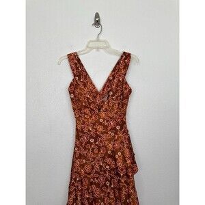 J. Crew Collection Cross Back Ruffle Midi Dress Vtg Vines Burnished Pecan 6 NEW