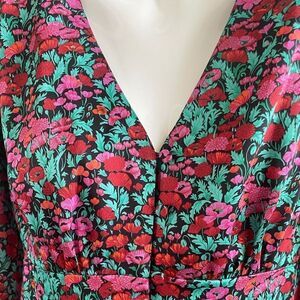 Featuring a pretty floral from Italy’s Ratti print house (home to some of the world’s most amazing motifs since 1945). Go dressy with a cute pair of sandals or more casual with a pair of boots or flats. Full length front button closure. Ruffle trim along sleeves. Lined interior. Silky, satin fabric.
