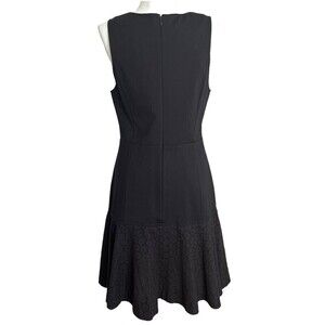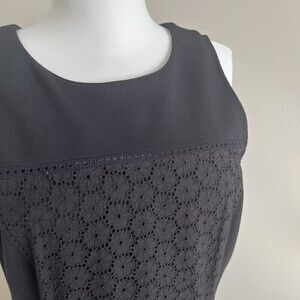 J Crew Collection Dress Paneled Eyelet Sleeveless Fit Flare Ponte Knit Black 8