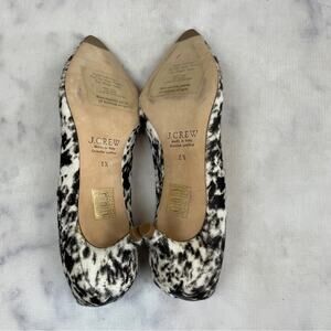 off white / black Dulci Spotted Calf Fur Pointy Toe Kitten Heel Pumps from J. Crew Collection. dyed calf fur upper, leather lining and sole. made in Italy. approx 2.25” heel. EUC - worn only once - with just very light scuffs on sole and very faint aging / very faint discoloration on fur on heels.