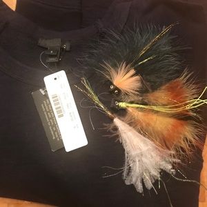 NWT J. Crew Collection fishing lure sweatshirt. Size small. First photo is stock. Feather “lures” are pinned and removable. I’ve owned this for a while and never worn....there looks like there’s a lure pin missing - I’ve just noticed and the girl who sold it to me of course never mentioned it. I marked the price down because of it.