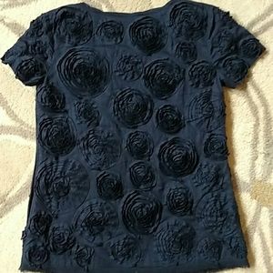 Very Pretty Vintage J. Crew Collection Navy Rosette Tee/Blouse in Size 0. Cotton.