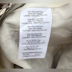 76% polyester, 24% polyamide. Lining is 100% polyester. Dry clean.