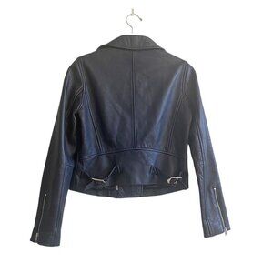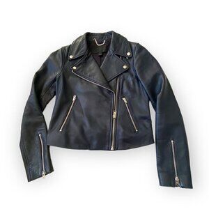 J. Crew Collection Leather Moto Jacket Navy, Size 2