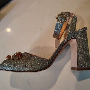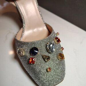 J. Crew Collection - Made in Italy Silver Glitter Vicky Pump with Jewels