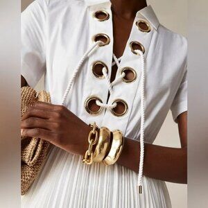 Subtly dramatic and floor-sweeping, this special style comes with oversized grommets and lace-up detailing down the front, plus a finely pleated skirt. It's all crafted in our crisp, customer-favorite cotton-blend poplin fabric that's lightweight with a touch of structure.