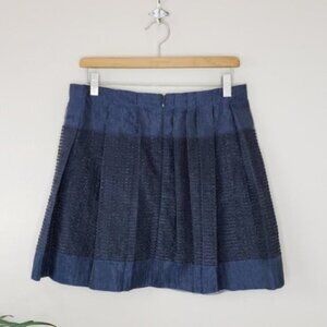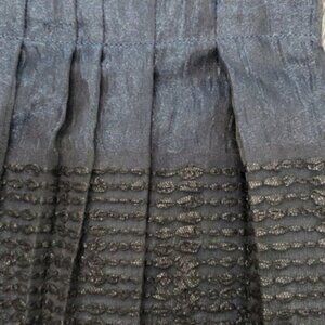 Stunning pleated skirt with a shimmery navy blue waist and hem with a textured black center. Back zip.