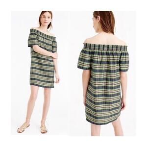 J. Crew Collection Off Shoulder Silk Plaid Dress