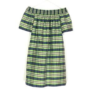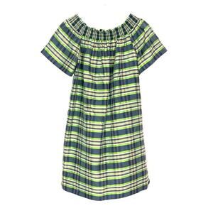 100% silk plaid dress with smocked neckline that can be worn on or off the shoulder