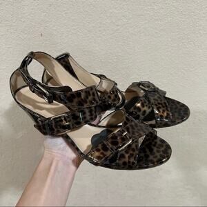 J. Crew Collection Patent leather leopard cheetah crossed buckle straps heels