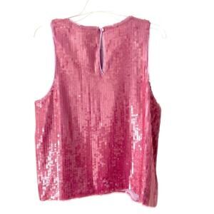 J. Crew Collection Pink Sequin Shell Blouse Lined size Large in excellent like new condition. Measurements laying flat chest 21 inches across and length 24 inches long