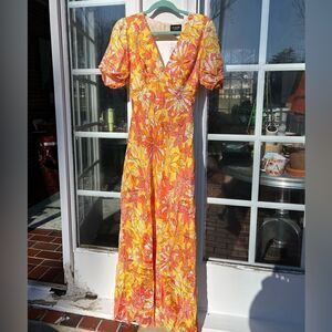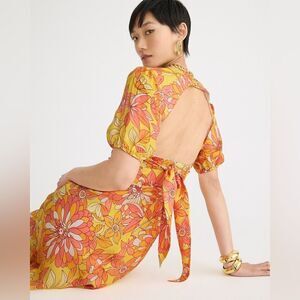 J Crew Collection Puff Sleeve Cupro Sunset Floral Maxi Dress NWT