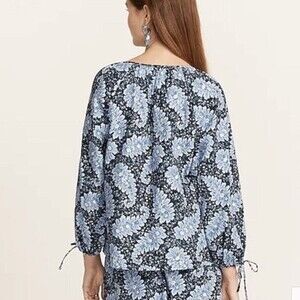 J Crew Collection Ratti Paisley Button Front Tie Sleeve Blouse Blue Size Medium