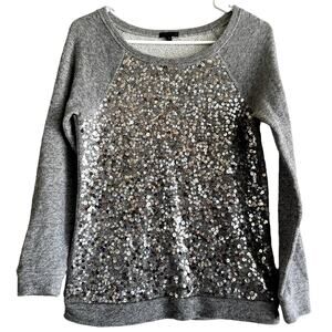 J. Crew Collection Sequin Raglan Pullover Sweatshirt 100% Cotton Gray XS