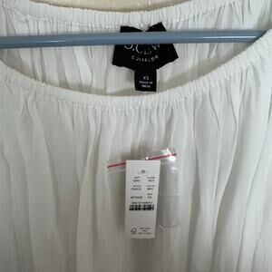 Description: Elevate your wardrobe with the J Crew Collection Sheer Gathered Long Sleeve Preppy Top. This white top exudes a modern and chic vibe with its relaxed-fit and artsy, vintage-inspired design. The sheer fabric and gathered detailing create a distinctive, effortless look perfect for both casual and upscale occasions. Ideal for those seeking versatile, on-trend pieces, this top is easygoing yet uniquely stylish, making it a statement-making choice for any fashion-forward ensemble. Embrace its contemporary cool and nonchalant elegance, infusing authentic charm and sophistication into your outfit.