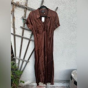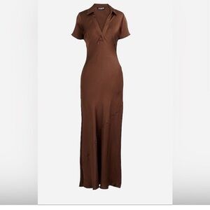 J. Crew Collection Short-sleeve maxi slip dress in luster crepe In Roasted Cocoa