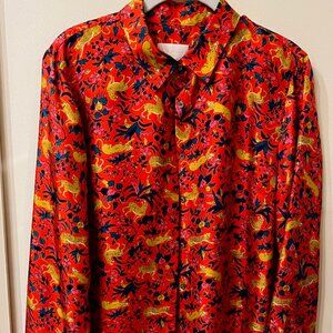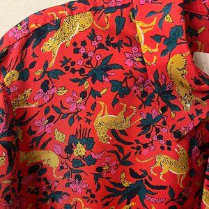 Vibrant and colorful Silk Twill Button Up Shirt in Jungle Cat Floral Print,
