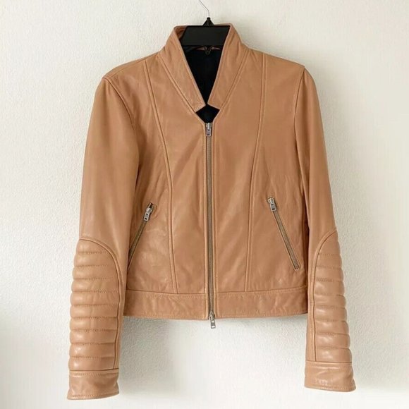 J. Crew Collection Standing Collar Leather Moto Jacket - NWOT - Peach Tan