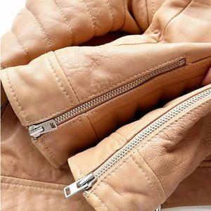 J. Crew Leather Moto Jacket Tan Quilted Bomber Biker Jacket